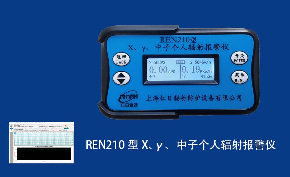 REN210型X、γ、中子個人輻射報警儀內(nèi)置SiPM和鋰玻璃晶體組成中子探測器儀器,采用反照率方式探測中子射線,同時也能探測X、γ射線。因此它可同事監(jiān)檢測X、γ、中子三種射線。能顯示工作場所的劑量當量率和累積劑量,更換電池時,日期及累積數(shù)據(jù)能永久保存。可選配RenRiPersonal個人劑量管理軟件,該軟件可存儲多個人的歷史數(shù)據(jù),能記錄日累積、月累積、年累積、輻照時長、計算平均劑量率、扣除或不扣除本底輻射,且以文字和圖譜的方式展現(xiàn)數(shù)據(jù)。廣泛應用于環(huán)保、化工、水泥、煤礦、土木工程、石油、醫(yī)院、疾控、進出口商檢、核電、加速器、機場、中子源庫和其他安檢、邊境控制海關(guān)檢測等領域中的工作人員進行個人安全防護監(jiān)測及放射性提示。
